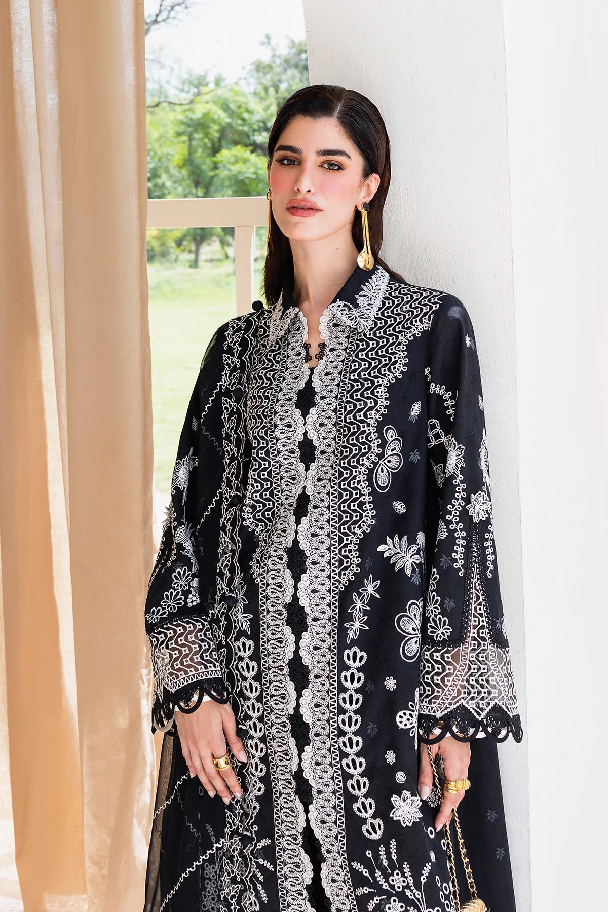 Eclipse features a lawn shirt complemented by a chiffon dupatta and cotton trousers, balancing simplicity with quiet statement.